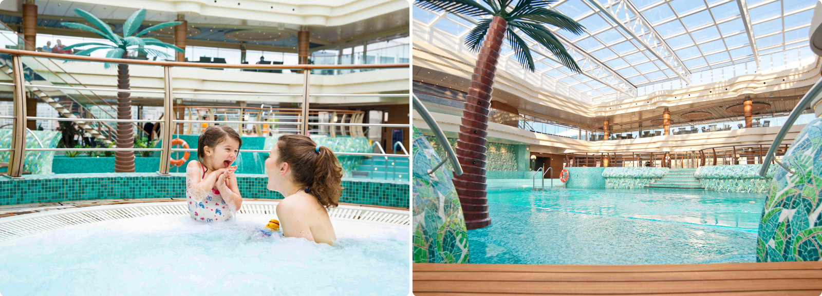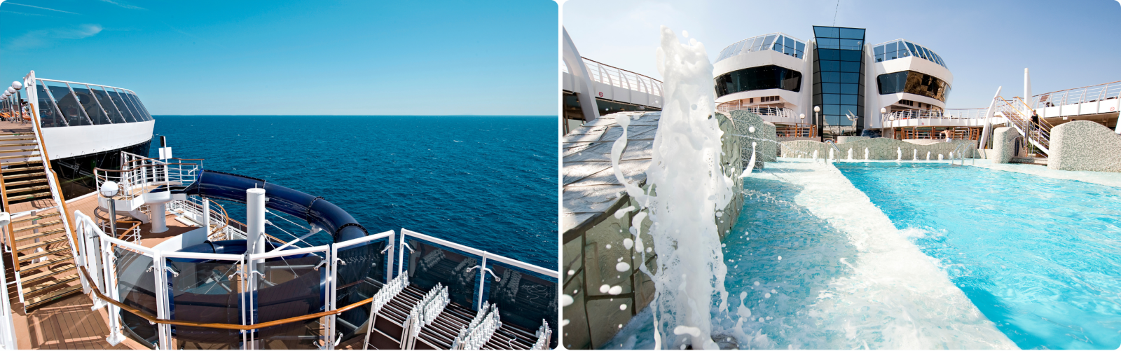 Aan boord van de MSC Splendida geniet je van meerdere zwembaden, jacuzzi’s en zonnedekken