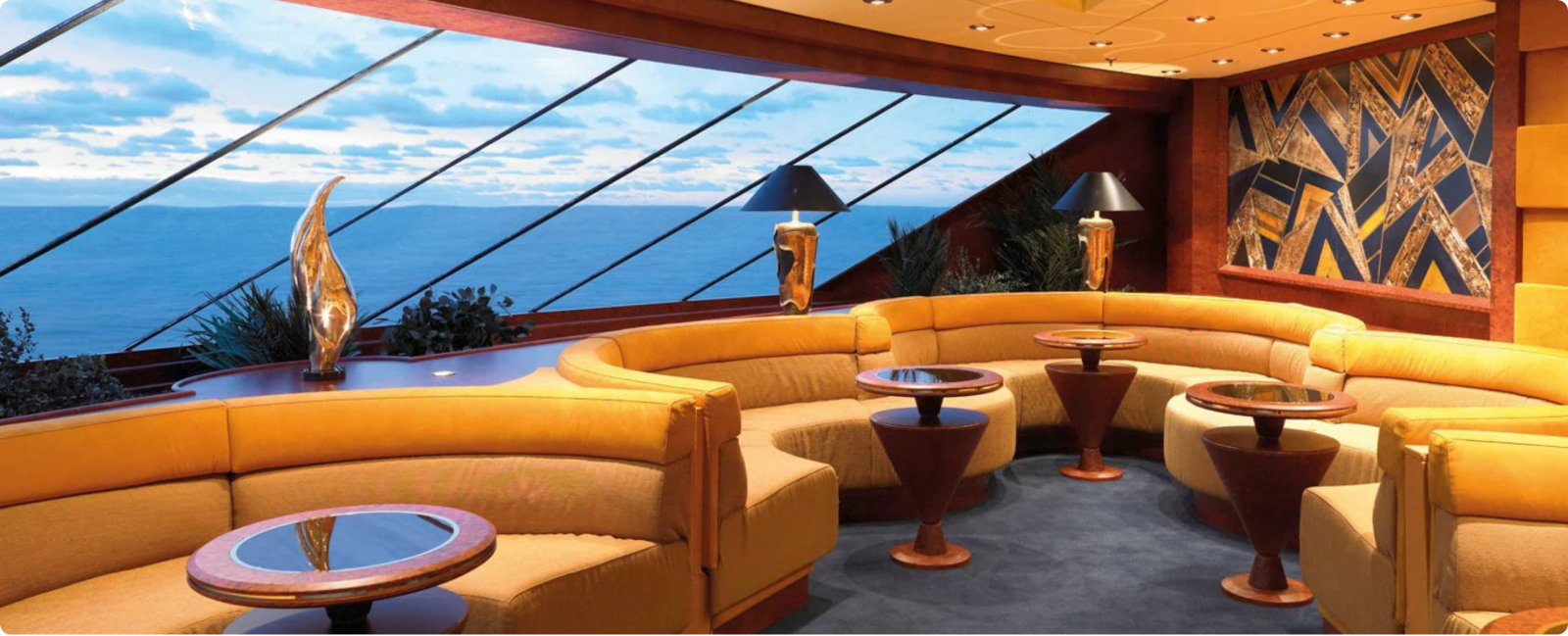 Aan boord vind je een schitterende variatie aan bars en lounges, elk met hun eigen unieke stijl.