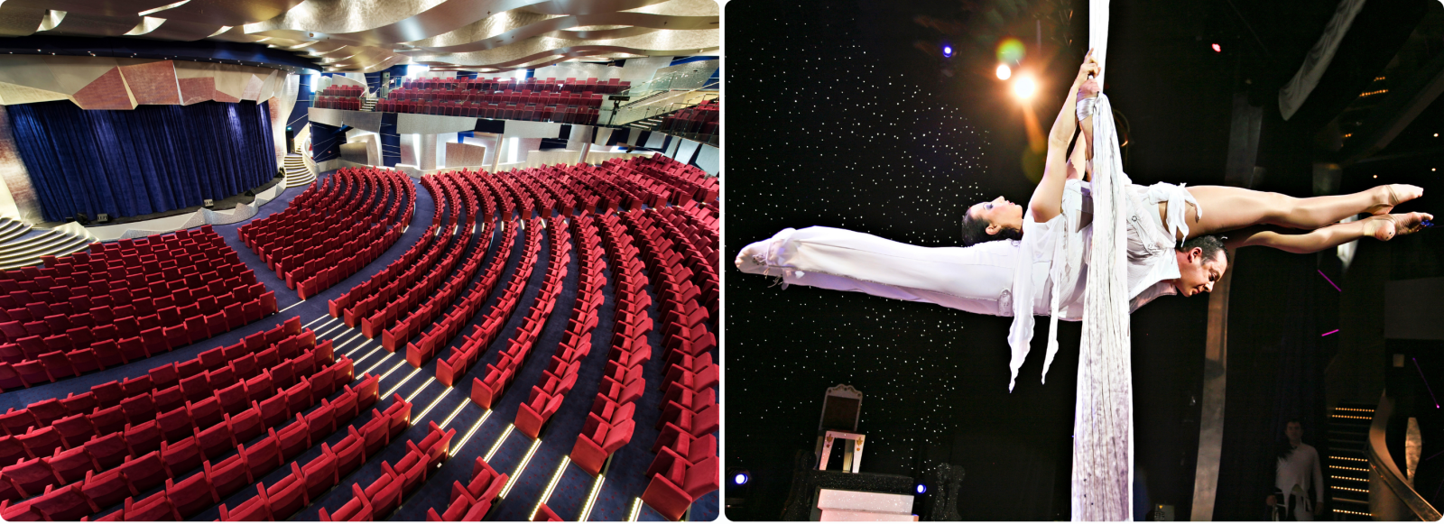 Geniet van avondentertainment in het theater, ontspanning in de spa,
