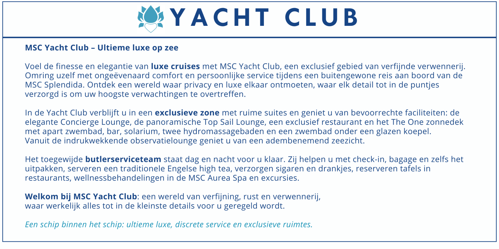 en toegang tot het luxe Yacht Club-gedeelte van het schip.