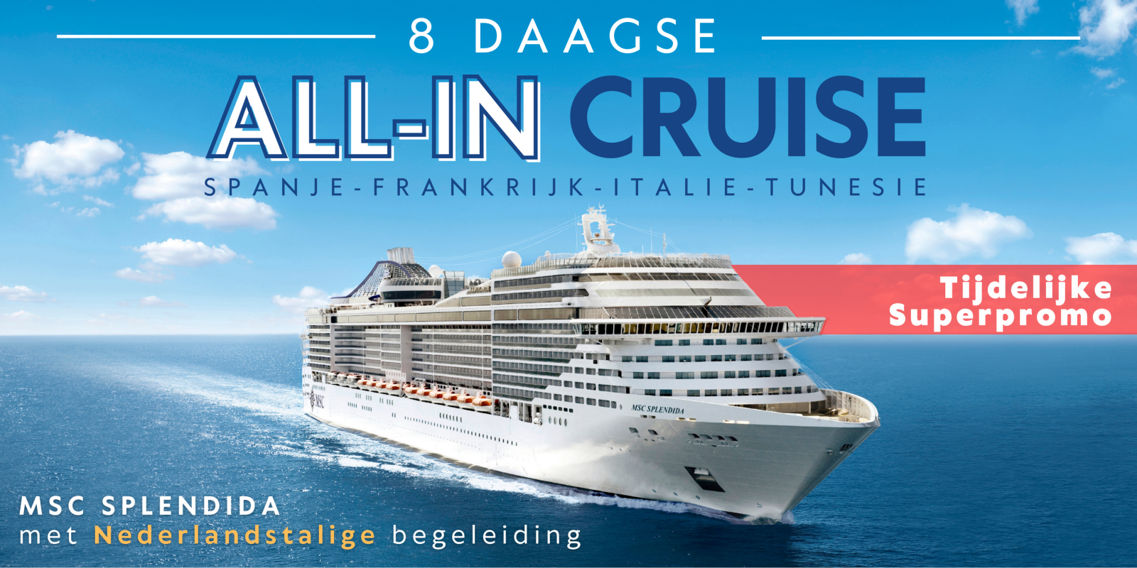 * Rechtstreekse vluchten: Brussel – Barcelona - Brussel * TOP Blauwe Vogel begeleiding gedurende de volledige cruise * 7 nachten aan boord van het prachtige schip MSC Splendida 4**** * Cruise op basis van All-Inclusive (buffetten doorlopend open tot 22u) * All-In drankenpakket MSC Easy * Havengelden * Fooien aan boord * Galadiner met de kapitein * White party * Toffe binnen en buiten activiteiten. * Prachtige Broadway & Dancing Shows aan boord met staande ovatie