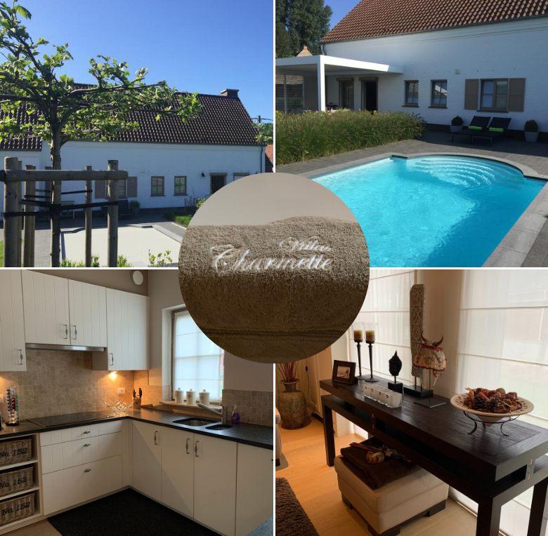 * Luxe villa Charmette met zwembad, Poolhouse, keuken met microgolfoven en oven, Nespresso koffiezet, waterkoker, koelkast, vaatwasser en kookplaat, 2 badkamers : een badkamer inclusief douche en hoekbad en een badkamer inclusief douche , haardroger aanwezig, apart toilet, eethoek en zithoek met grote TV, 2 grote slaapkamers met telkens een dubbel bed (uitbreiding met 2 extra veldbedjes/Imtex (zelf mee te brengen) is mogelijk, dressing, bureauruimte, garage aan woning, grote oprit, 3 grote terrassen inclusief toffe tuinmeubels, ligzetels, overkapping Renson Camargue.