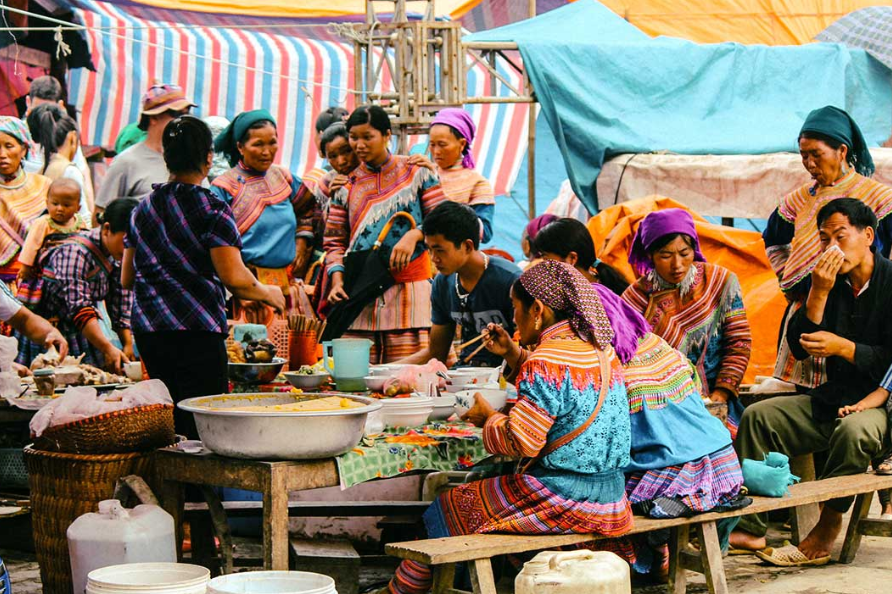 De zondagsmarkt van Bac Ha en Sapa regio in Vietnam is een levendige en kleurrijke markt die plaatsvindt op zondagen