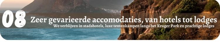 Stadshotels, luxe tentenkampen langs het Kruger Park en prachtige kleinschalige lodges.