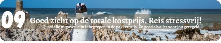 * vliegreis vanuit Brussel met lijnvluchten (altijd met 1 overstap - rechtstreekse vluchten vanuit België naar Zuid-Afrika bestaan niet) * Nachtvluchten zonder jetlag ! * Binnenlandse vlucht van Johannesburg naar Port Elizabeth. * Zeer gezellige hotels / guesthouses & lodges * Halfpension, alle dagen uitgebreid ontbijt en warm avondmaal * lunch in Oudtshoorn * Uitgebreide reisgids bij reisdocumenten * Excursies en inkomgelden * Alle hoogtepunten * Lokale Afrikaanstalige / Engelstalige gids * Fooien kruiers bij de hotels