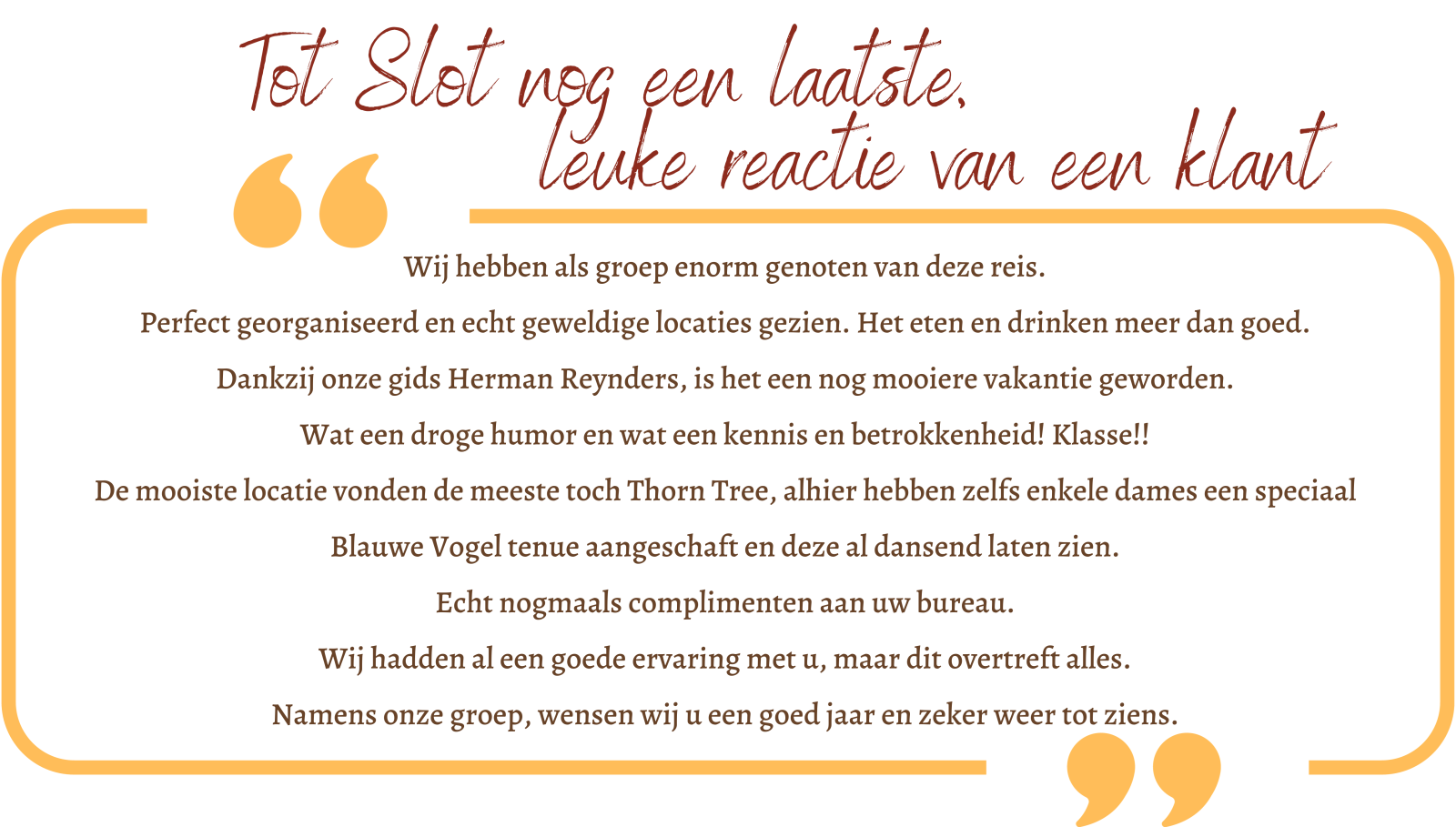 We raden onze klanten zelfs aan om rond te kijken bij collega-reiskantoren.