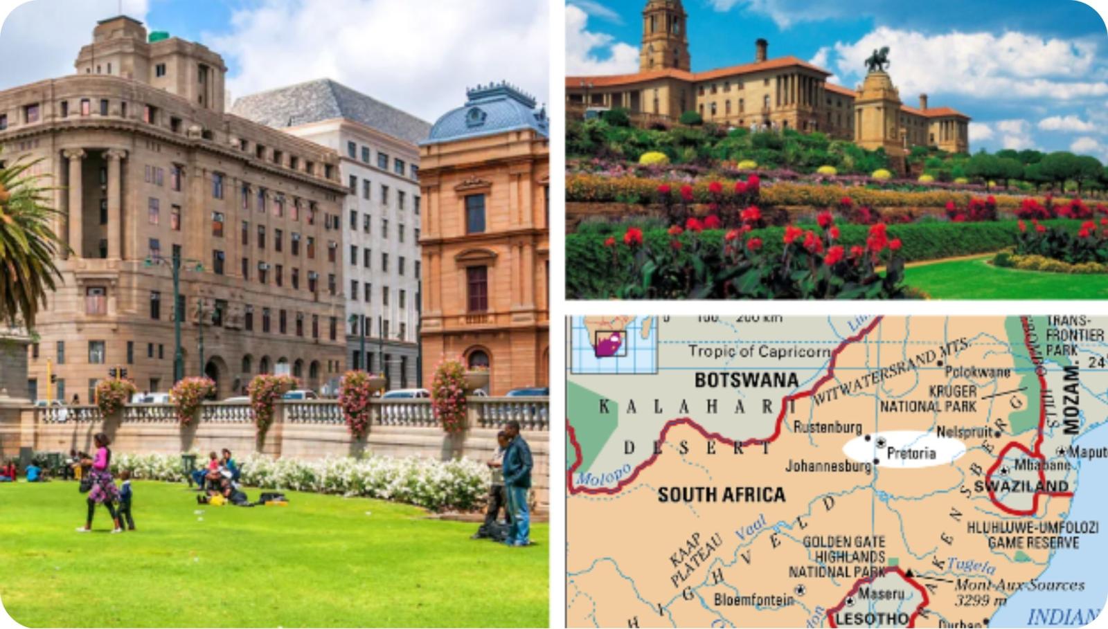 Deze bijzonder mooie route brengt ons weer van het Laag- naar het Hoogveld. Pretoria is de administratieve