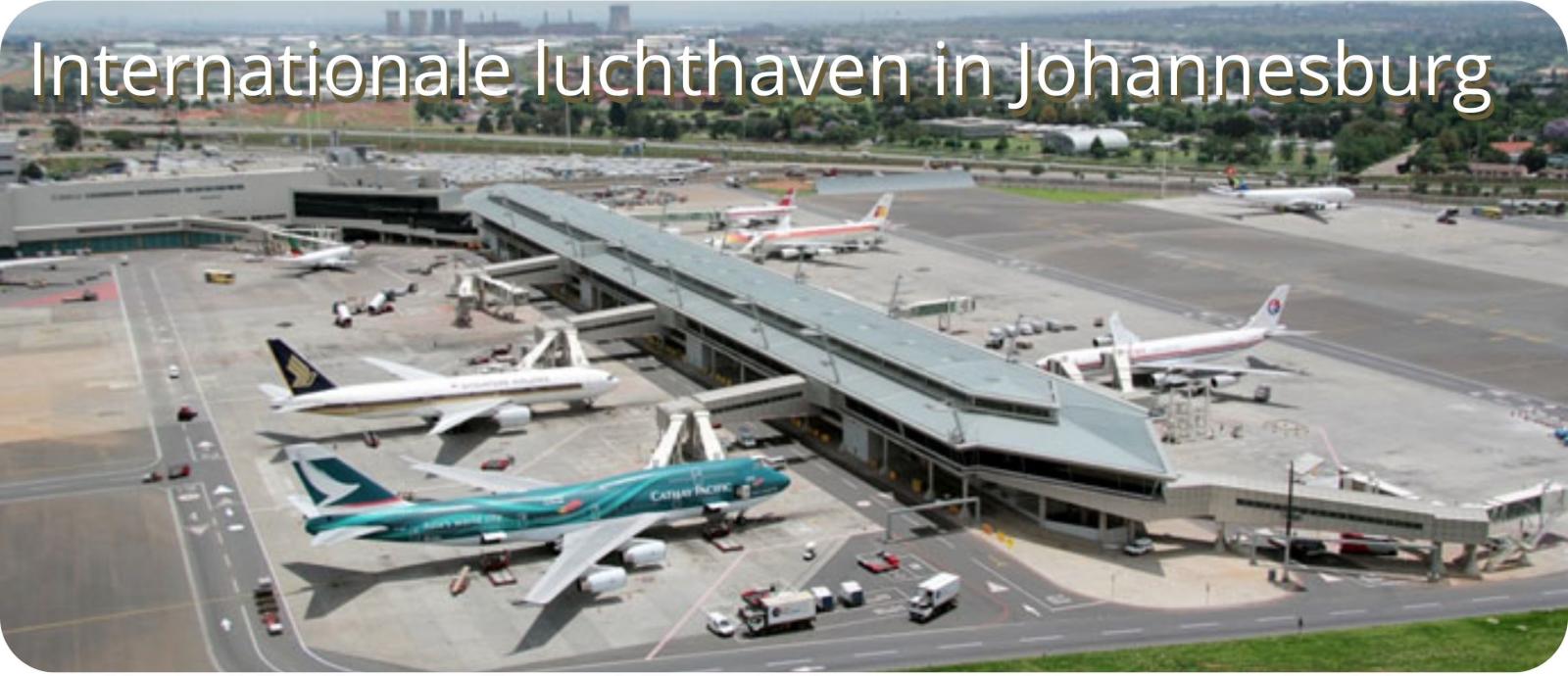 Aangekomen op de luchthaven OR Tambo International Airport, wacht er een transferbus om ons naar