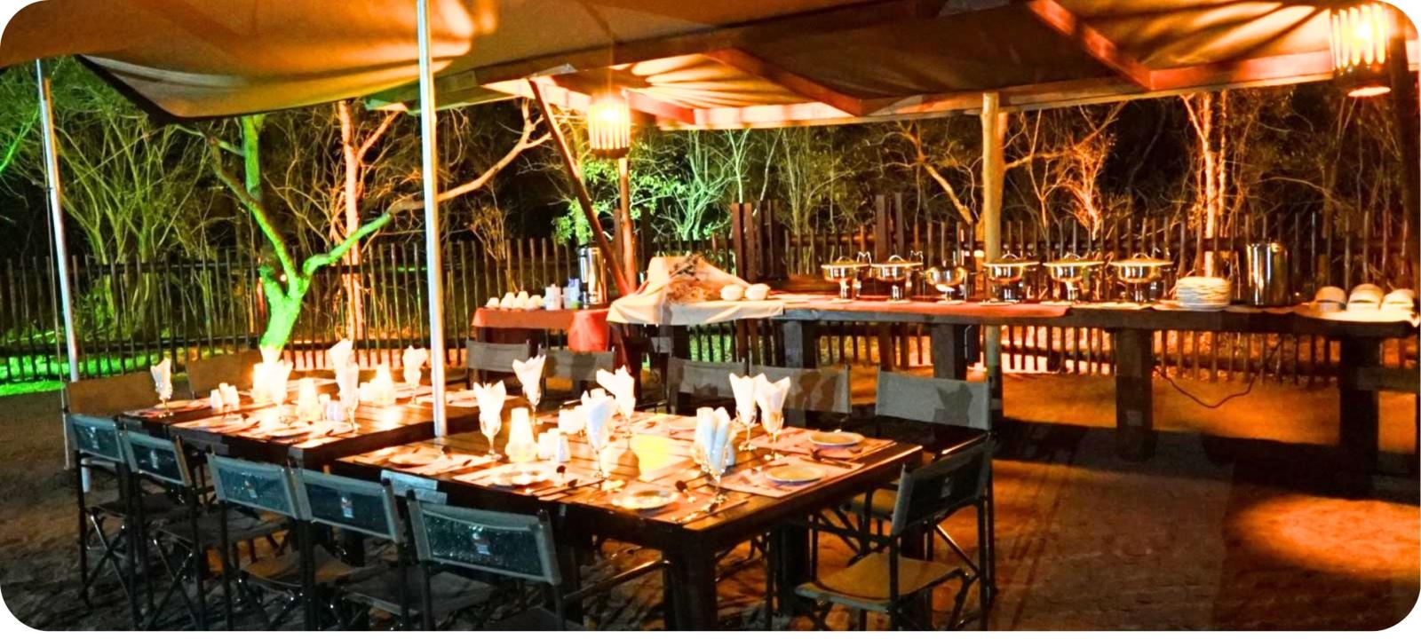 zijn beschikbaar in de tent. Maaltijden worden geserveerd in de boma.
