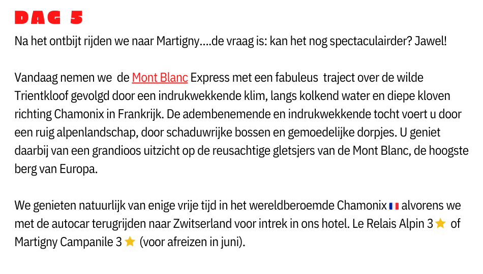 * Mont Blanc Express treinrit Martigny - Chamonix