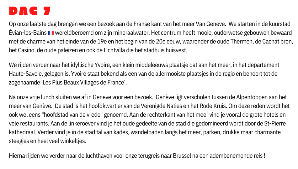 * Touringcar ter plaatse gedurende het volledige verblijf