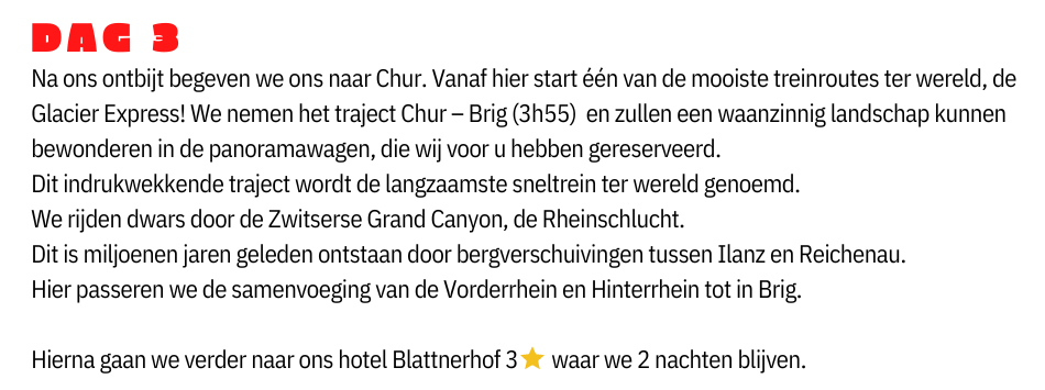 * Glacier Express treinrit Chur – Brig in panorama wagon