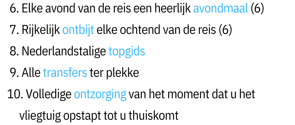 hotels, vliegtuigtickets, autocar, de begeleider, de dure treintickets, de prijzige maaltijden,...